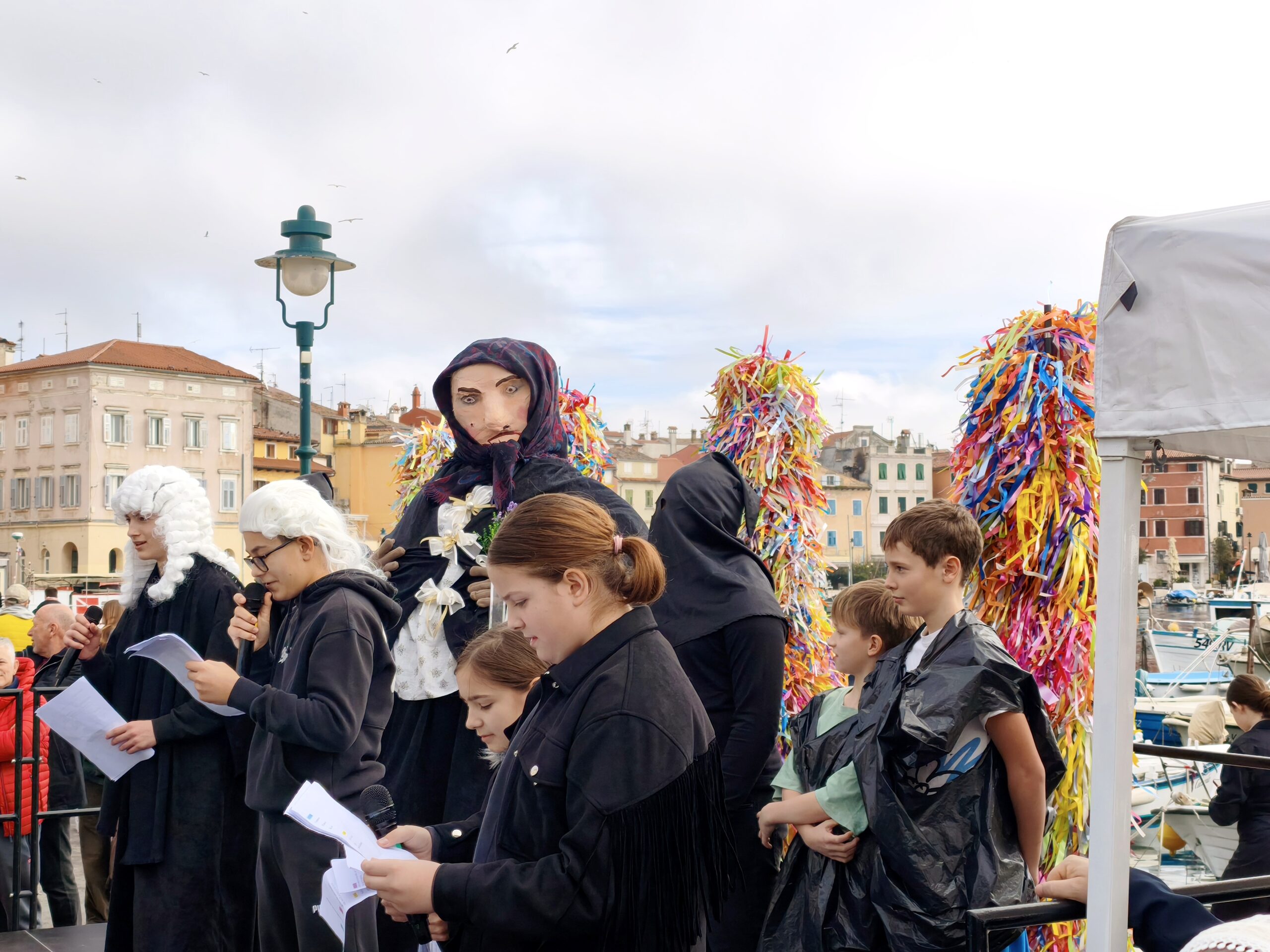 Al termine, i partecipanti sono stati accolti dai presentatori e dal Mastro del Carnevale rovignese, Milan Medak. Dopo la conclusione della sfilata si è tenuto il tradizionale processo alla Viecia Batieca, “colpevole” di tutto ciò che di negativo è accaduto durante l’anno. Gli alunni della Scuola elementare italiana Bernardo Benussi l’hanno condannata alla segatura della pancia, dalla quale sono poi saltate fuori caramelle per tutti i partecipanti.