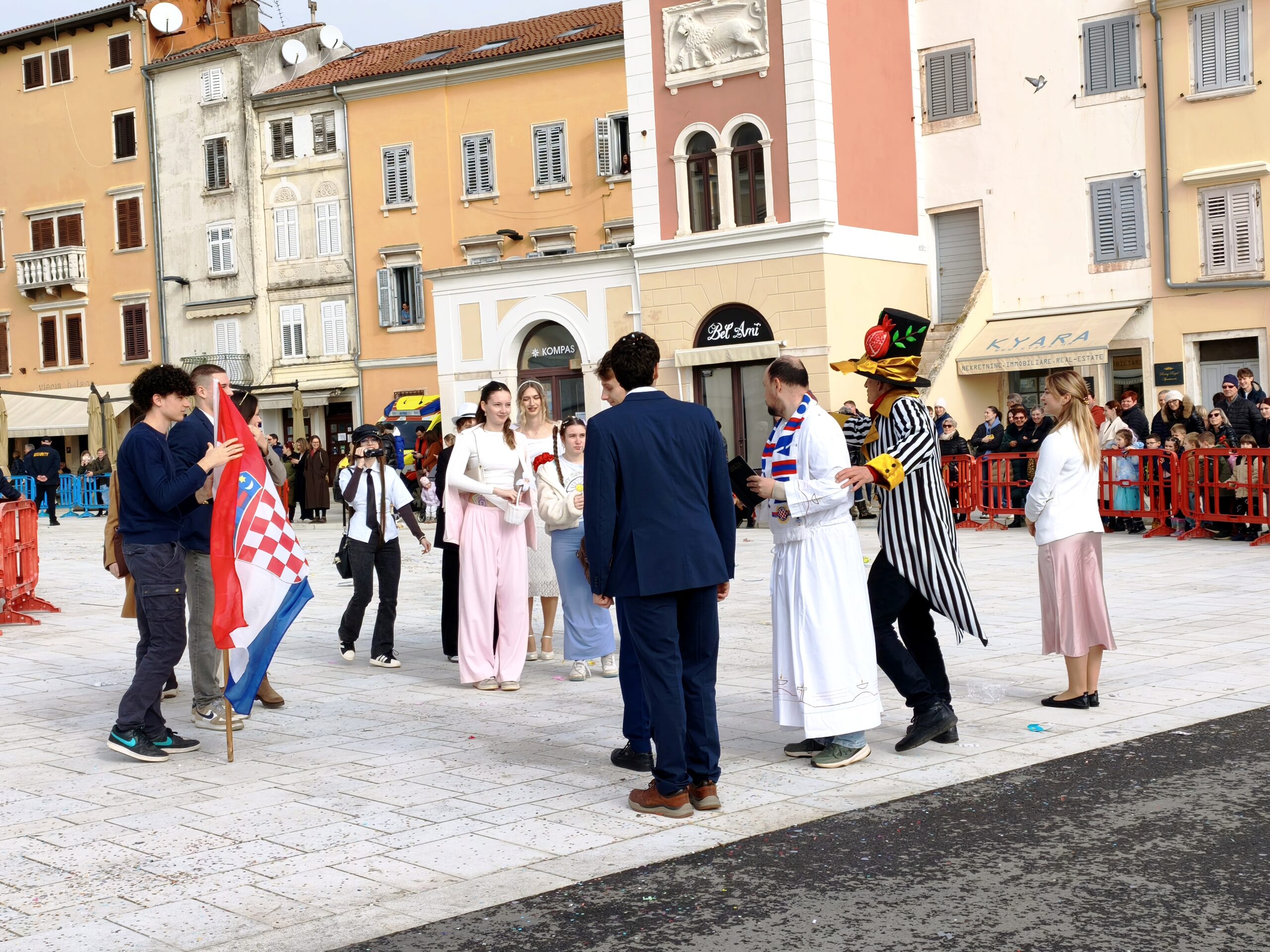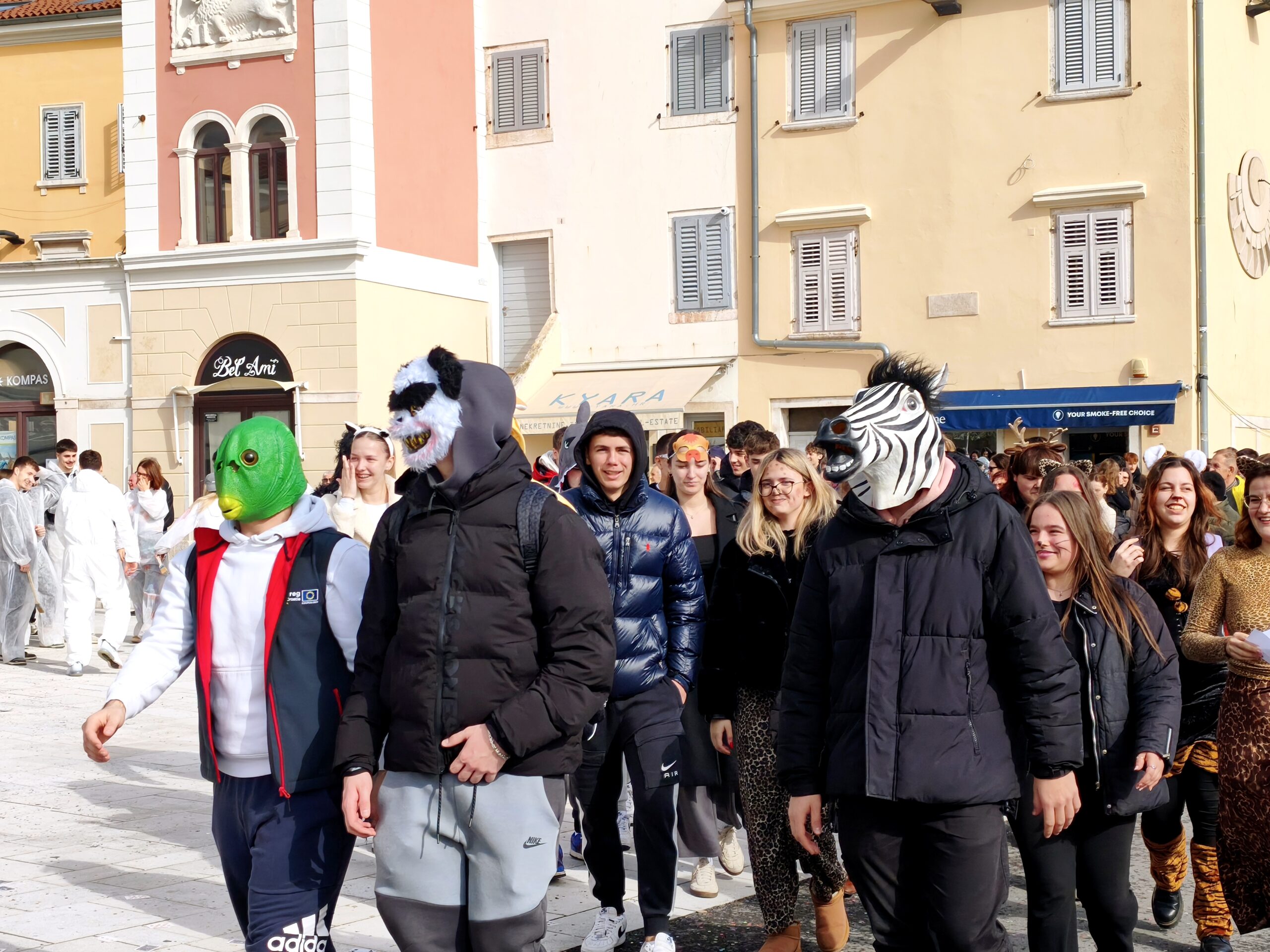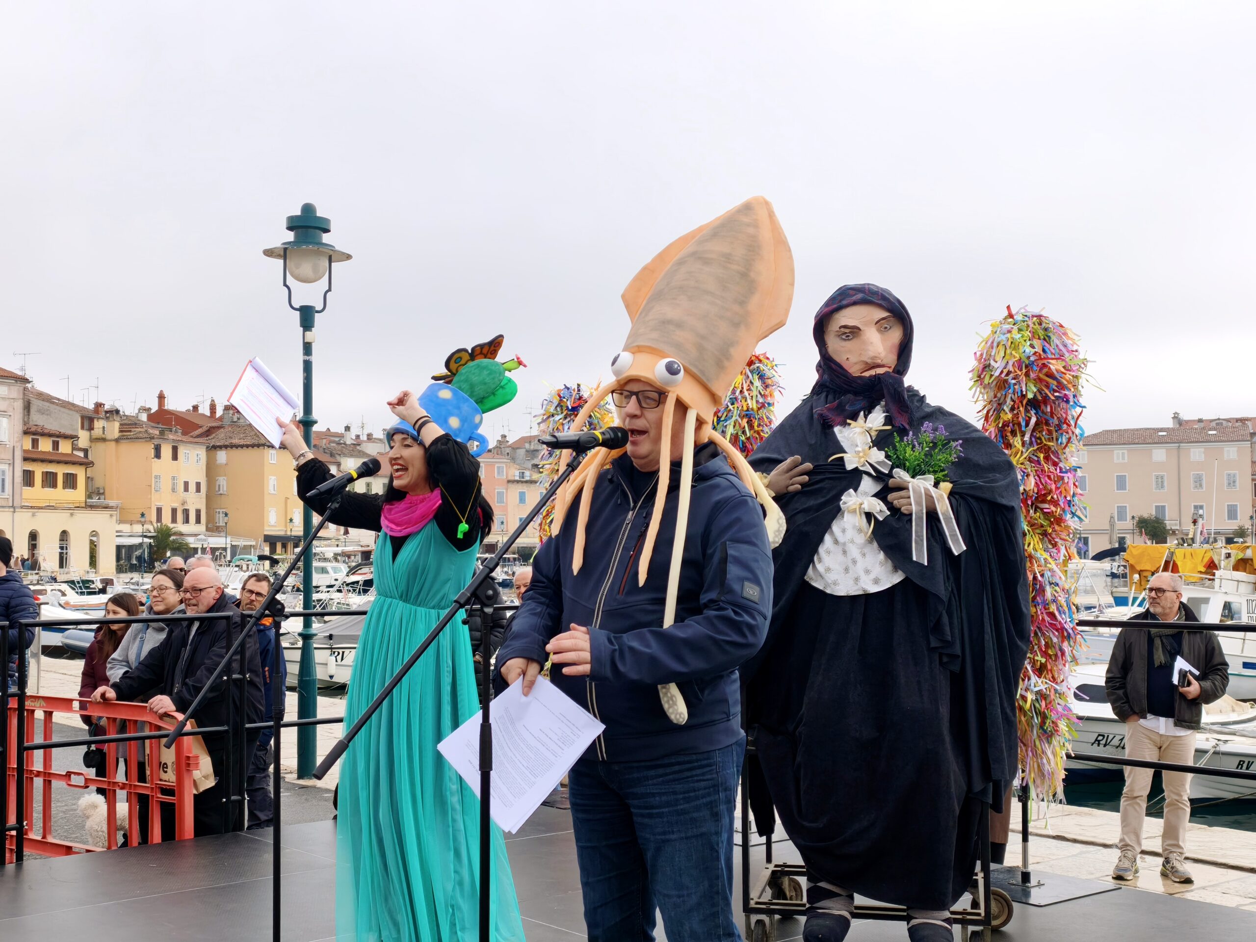 La sfilata ha portato il vero spirito del Carnevale, con tanta fantasia e colori. Si potevano vedere emoticon, la scrittura glagolitica, sardine, caramelle “tic-tac”, carte, uomini d’affari, il regno animale, “La carica dei 101”, e si è svolto anche un vero e proprio “matrimonio croato”. Non sono mancati pirati, “uomini in nero”, ladri e detenuti, e l’intero thriller carnevalesco ha raggiunto l’apice con il tentativo di furto della Gioconda.