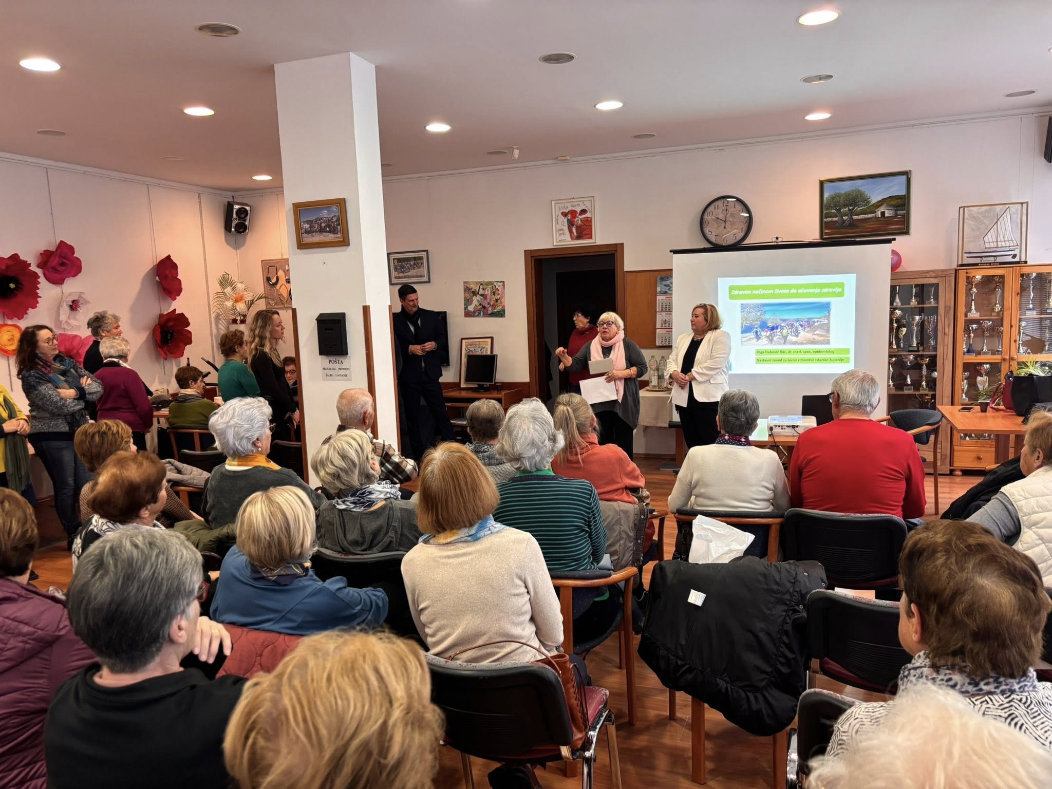 All’apertura del programma, il vicesindaco Dino Sošić ha salutato i presenti, sottolineando l’importanza di iniziative di questo tipo che contribuiscono direttamente a una terza età più sana e attiva, e lodando l’impegno dell’Associazione dei pensionati e dei professionisti sanitari coinvolti nella realizzazione. La presidente dell’Associazione Vesna Milan e la vicepresidente Marinella P. Bašić hanno dato il benvenuto a tutti i partecipanti e ai rappresentanti della Città, annunciando che nel corso dell’anno si terranno una decina di incontri, in lingua croata e italiana, così da garantire una più ampia accessibilità del programma alla comunità.