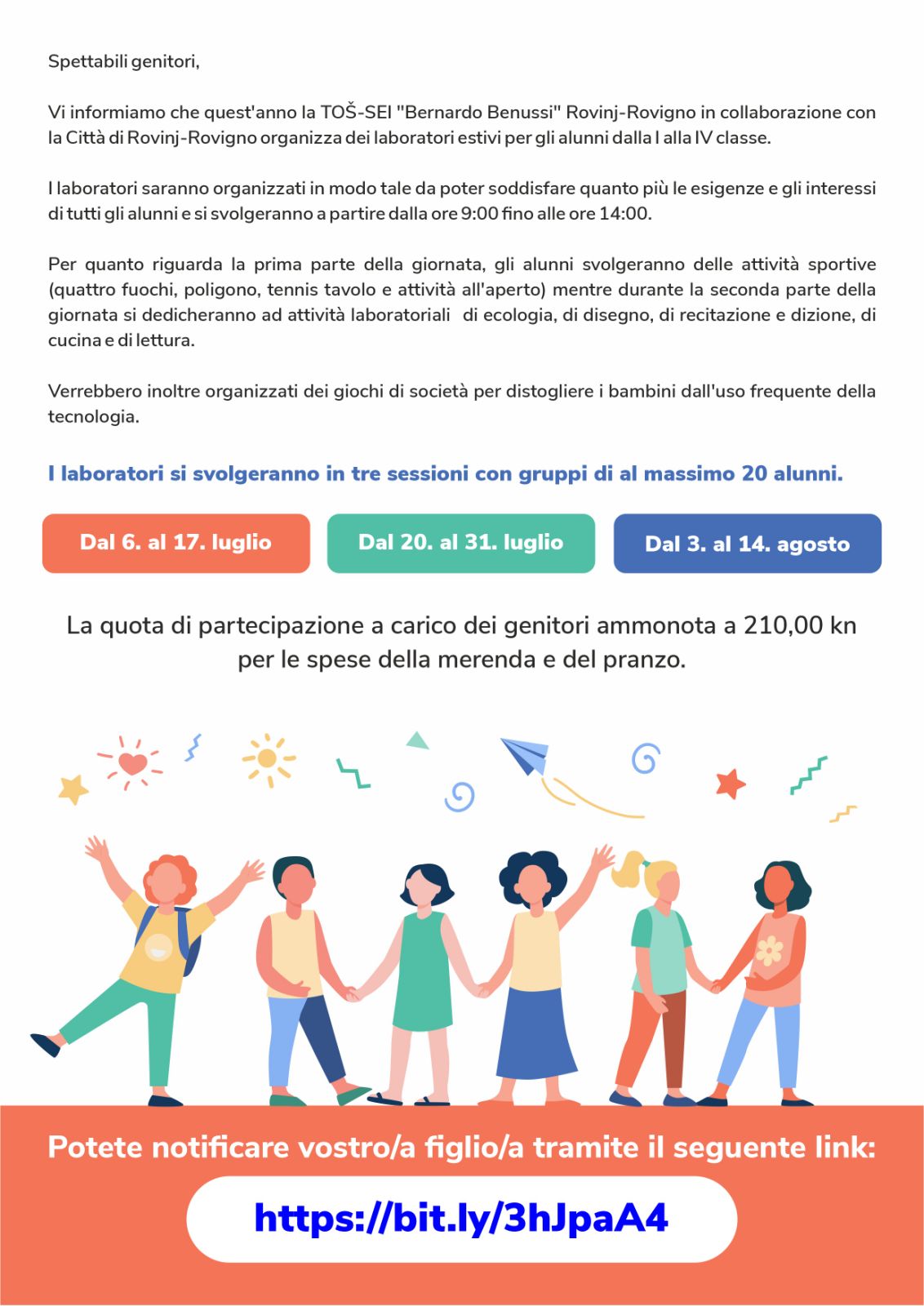 I genitori partecipano alle spese con 210 kune per il pranzo.