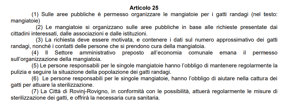 LA CITTÀ DI ROVINJ-ROVIGNO ringrazia tutti i volontari e le associazioni che ogni giorno visitano e si prendono cura dei gatti randagi.