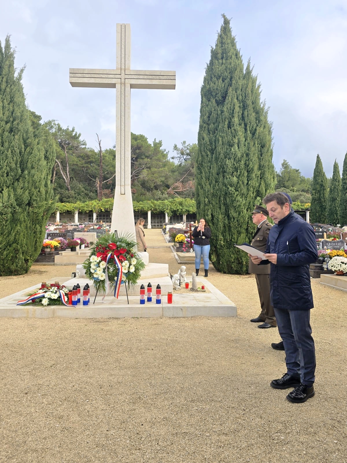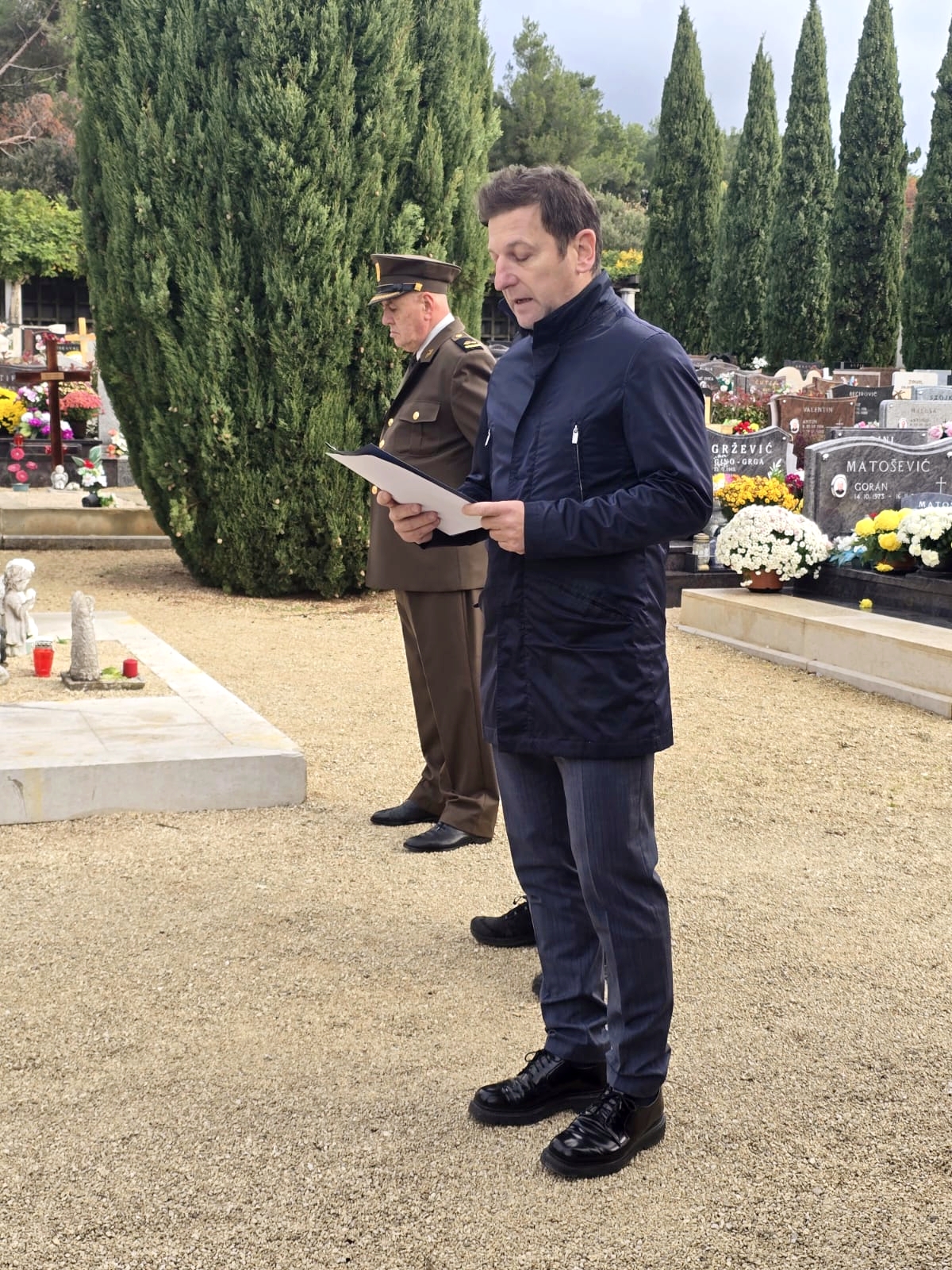 Nakon minute šutnje posvećene gradu Vukovaru, njegovim građanima, mještanima Škabrnje i svim žrtvama Domovinskog rata, okupljenima se obratio gradonačelnik Emil Nimčević, istaknuvši da, iako je prošlo više od tri desetljeća od tih tragičnih događaja, bol i težina ostaju prisutni i duboko ukorijenjeni u zajedničkom sjećanju. «Danas smo se okupili da odamo počast njihovoj hrabrosti, ali i da obnovimo vlastitu obvezu da vrijednosti humanosti, zajedništva, dostojanstva i mira ostanu temelj našeg društva. Današnji dan ima posebno mjesto u kolektivnom pamćenju hrvatskog naroda. Sjećanja na ove tragične događaje moraju nam biti podsjetnik na neprocjenjivu vrijednost mira i slobode. Te vrijednosti moramo braniti, čuvati i graditi svakodnevno, odgovornošću, empatijom i međusobnim dijalogom. To je najbolji način da se odužimo onima koji su dali sve za našu budućnost».