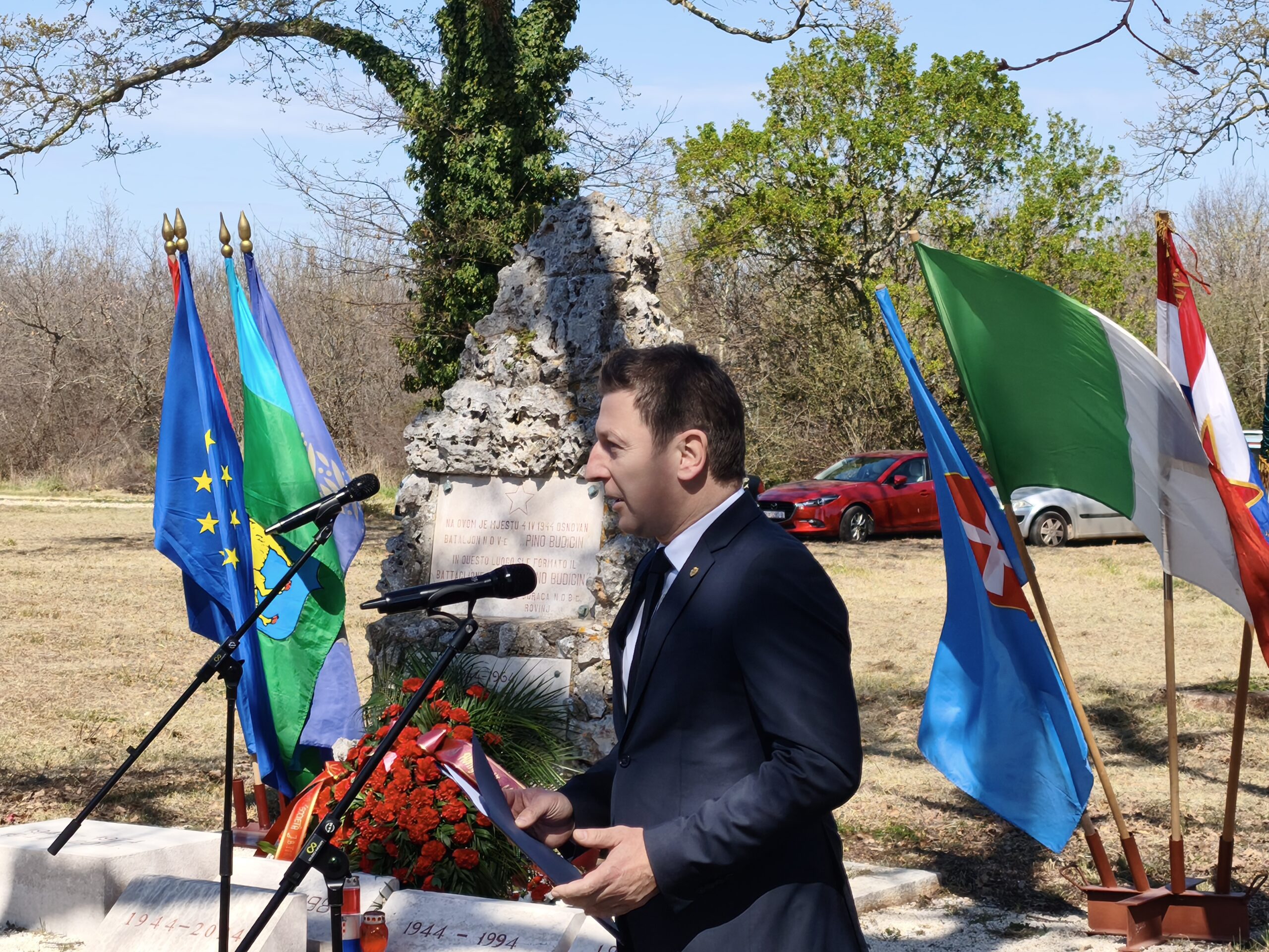 U svom obraćanju gradonačelnik Emil Nimčević istaknuo je važnost 4. travnja 1944. godine kao datuma koji trajno svjedoči o snazi otpora, ljudskom dostojanstvu i vjeri u slobodu. Naglasio je kako Talijanski bataljun „Pino Budicin“ predstavlja jedan od najsvjetlijih simbola antifašističke borbe na ovim prostorima, kao i snažan znak zajedništva, međusobnog povjerenja i zajedničke borbe talijanskih i hrvatskih antifašista.