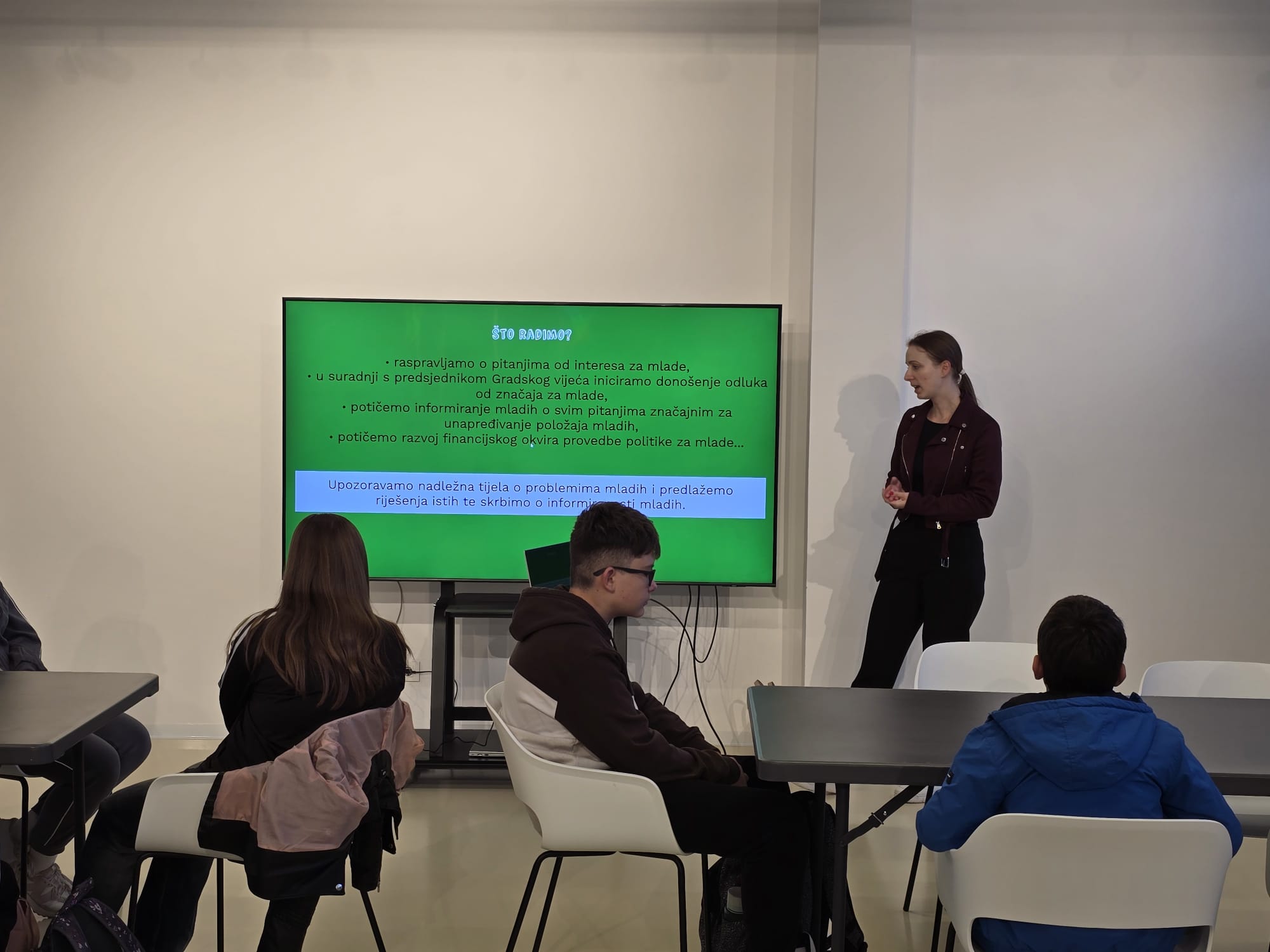Tom su im prilikom predstavile aktivnosti i sadržaje Centra za mlade koji su im na raspolaganju u slobodno vrijeme, kao i misiju i ciljeve Savjeta mladih, kojem se mogu obratiti kako bi izrazili svoje potrebe i prijedloge za sadržaje kojima žele unaprijediti život mladih u gradu. Naime, nedavno su zatvorene prijave za članove novog saziva Savjeta mladih, a izbor će provesti Gradsko vijeće na sljedećoj sjednici.